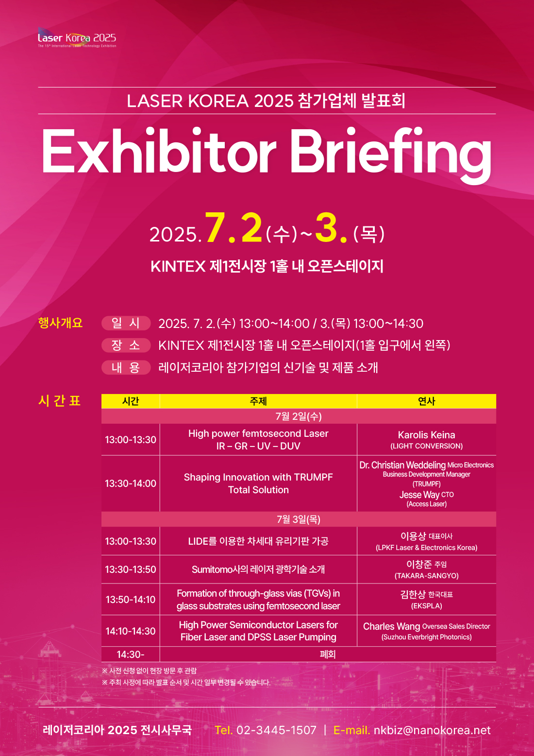 [레이저코리아2025] 한눈에 살펴보는 참가기업들의 신기술 & 제품, 레이저코리아 Exhibitor Breifing에서 확인하세요 !