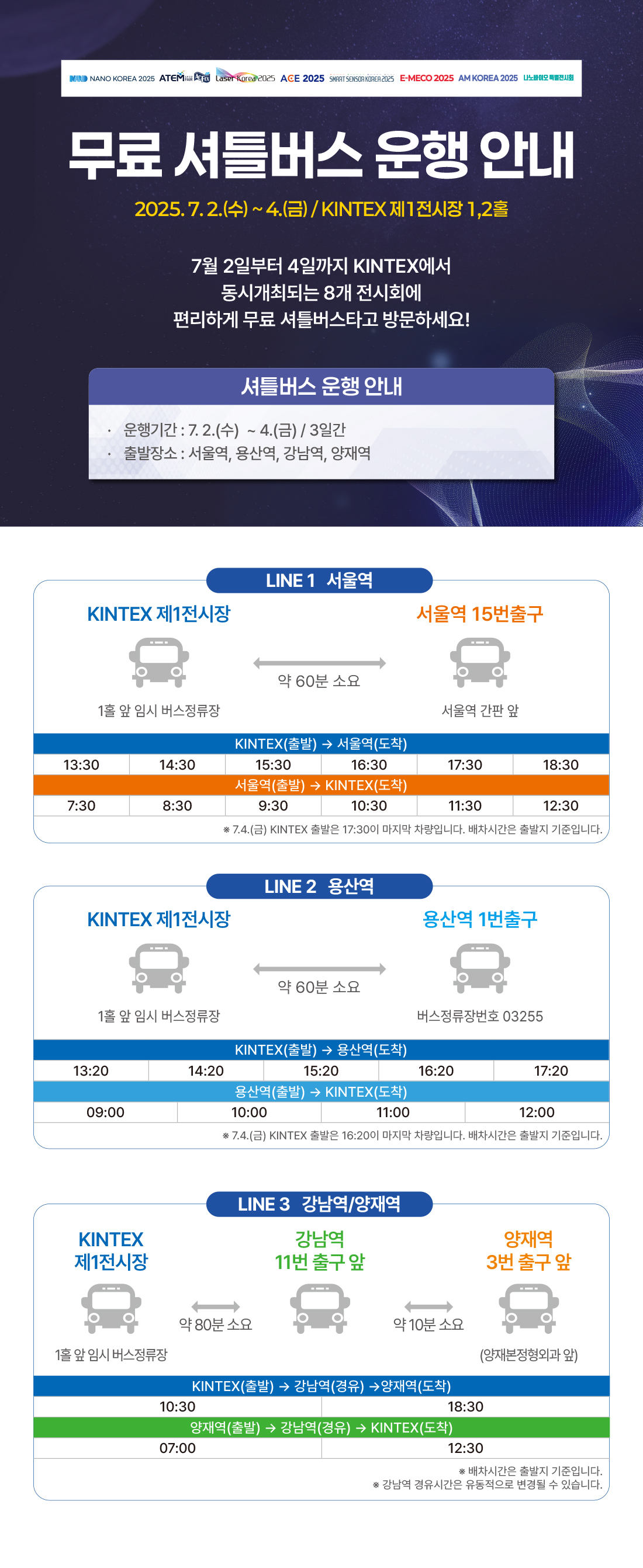 * 7.2(수)~7.4(금), 셔틀버스 정류장을 못 찾으시는 경우 전화 문의 주세요.