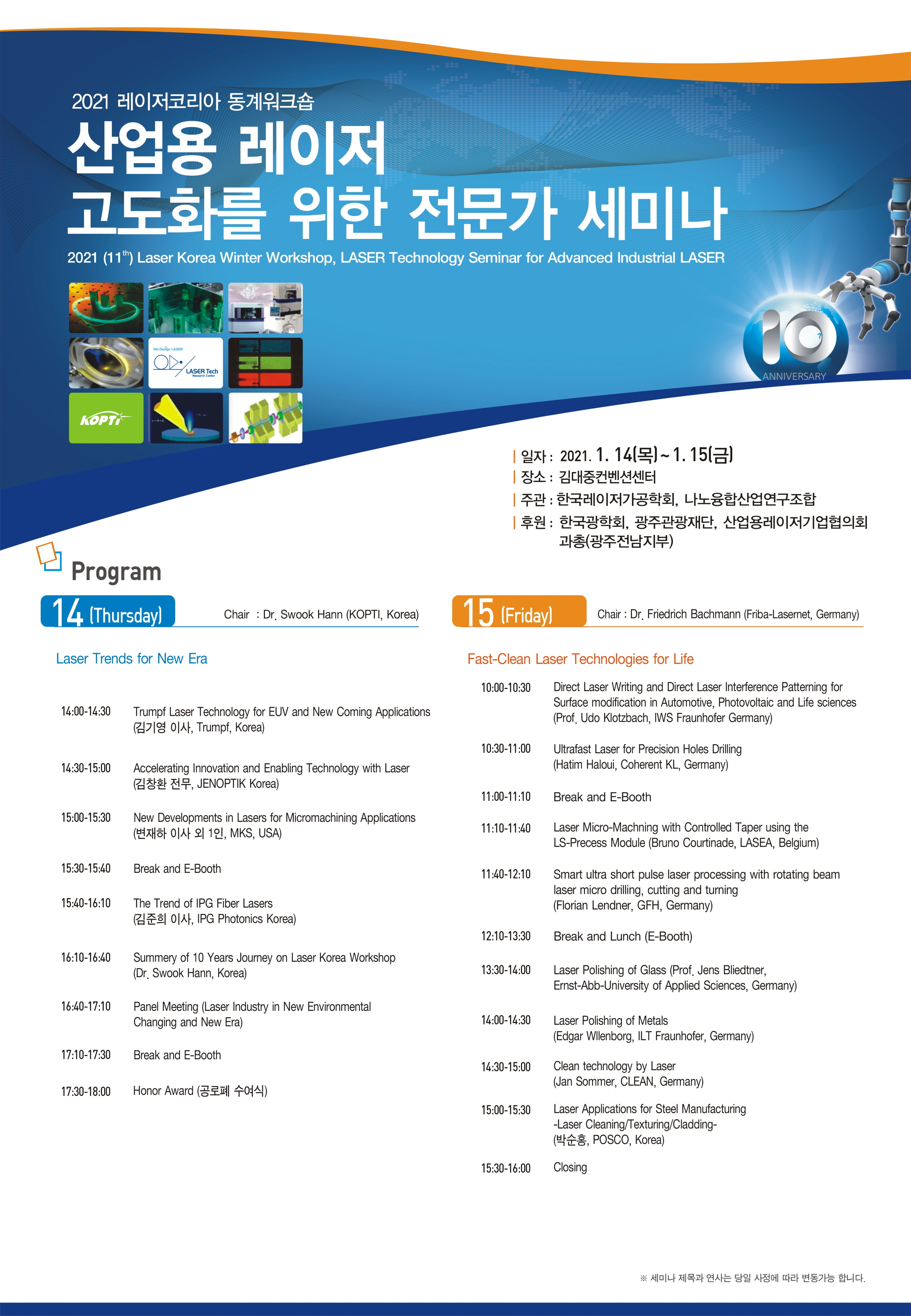 레이저코리아 동계워크숍 최종 프로그램 안내
