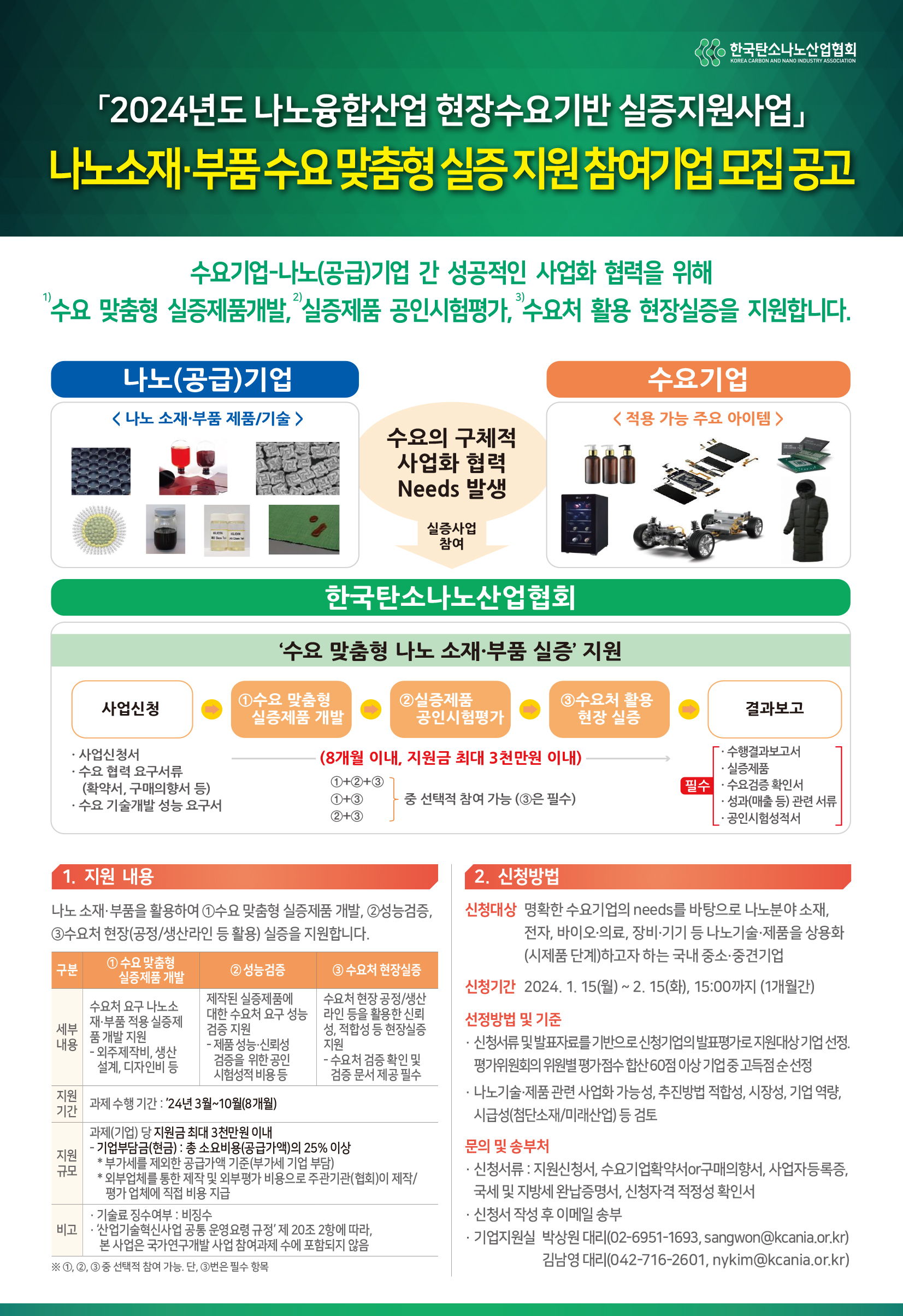 2024년도 「나노소재·부품 수요맞춤형 실증」 지원 대상기업 모집 공고